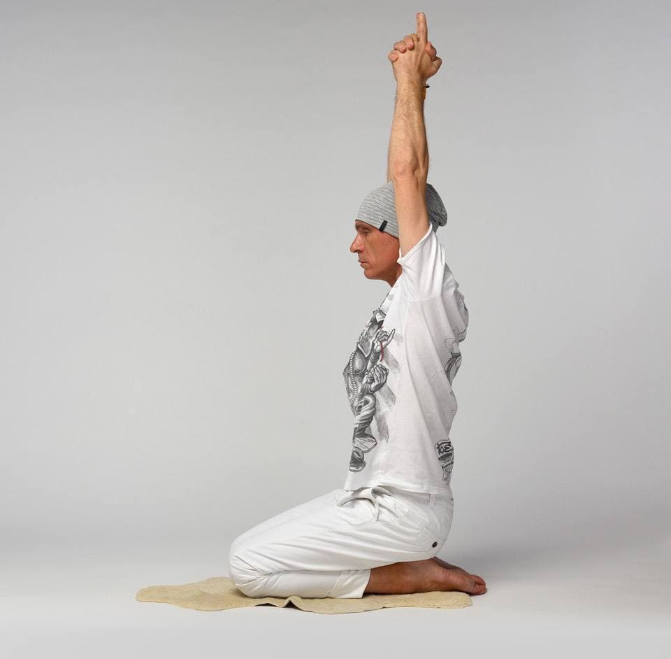 Обратите внимание, что бёдра и нижняя часть спины не меняют своего положения, а позвоночник остается прямым. Единственное движение, которое делают ваши руки, — поднимаются вверх с каждым «Сат», вслед за грудной клеткой.